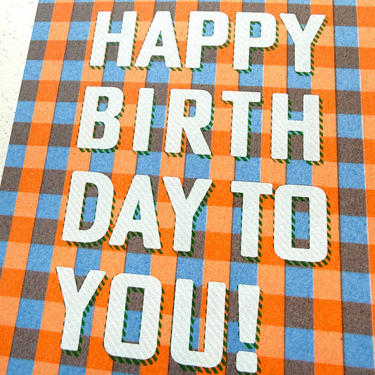 Greeting card / gingham check "Happy Birthday"